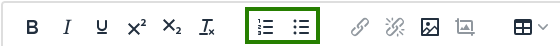 Bullets and numbered lists can be used in any TinyMCE field
